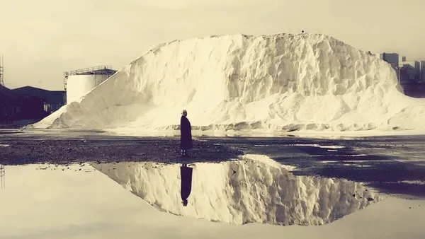 "We could be at the North Pole," we are told, watching dark blue waters lap against white shores, but this is no glacier before us, it's a mound of salt. Cousins delights in setting up illusions like this (with help from accomplished Australian cinematographer Christopher Doyle), encouraging us to look beneath the surface, to look beyond the city's own portrayal of itself. Two men walk towards one another in a tunnel; in the background, there's bar. But this isn't somewhere one can pop in for a pint. It's just painted on the wall, in memory of a real bar blown up during the Troubles.