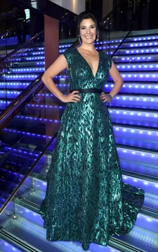 | Jasmine Hyde showing off a £30,000 Misha Kaura gown at the London première of The Unseen Photo: Getty Images |