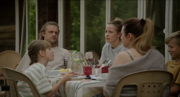 We did three kinds of rehearsals. We did rehearsals with all of the adults and children by the script with the scenes that children were in just for them to always know what's happening.Then we did rehearsals with the children with Ugne about the technical stuff, like with the breathing exercises so because the little wouldn't be afraid because you can get dizzy. So just to have them as safe as possible and understanding what's happening and what’s around them. Then with the adults we spent the time developing their different dynamics and the family. We built a history for all of them and a group history - so, when did they meet? Which was like the first husband? When did they have children? To have this solid base because half of a film was improvised and half is by the script. But, of course, we had the structure because we had jumps.So we had the structure of the script but we had time and scenes to improvise within this. WE tried to find different dynamics and combinations and this was based on how they understood the characters and how we had prepared.
