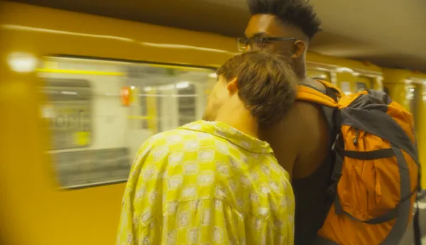 In the course of their adventure, the two discuss everything from sex to religion, cheese and the internet. It’s a very personal journey through Berlin, highlighting some of the city’s nostalgic artefacts like photo booths and cybercafés. Director Daniel Sanchez Lopez uses a lot of handheld camera shots and natural light to create an impression of immediacy, but there’s nothing casual about his style – we see exactly what he wants us to see, taking in the gaily painted brutalist buildings which tower overhead, the elegant modern plazas, the movement of crowds, the continued physical intimacy between the two leads. Harry, wary of emotional entanglements, says he makes a point of never sleeping with the same guy twice, yet he can’t keep his hands off Johannes. Frequent close-ups build on the chemistry between the actors to capture that feeling when one individual suddenly seems bigger and brighter and louder than everything else in the world. Koutsoulis supplements this with an increasing tendency to gaze off into the distance; Johannes wants more but doesn’t know how to say so. As they discuss names for a theoretical child, the hours tick away.