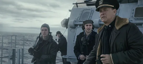 Significant military advantages rarely last for long. This was one of those rare periods in history when attackers at sea very much had the advantage over those seeking to defend. in the middle of the ocean, the 'black pit' out of reach of aircraft surveillance from either side, German U-boats roamed in packs, their presence extremely difficult to detect, sinking any Allied ships they could find. It's through this territory that Krause's ship, the Greyhound, and the three others under his command, must lead a convoy of supply ships, seeking to evade and outsmart the U-boats over the course of three nerve-racking days.
