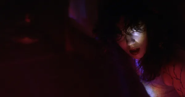 There have been a few films built on this sort of model recently. One might think of You’ll Never Find Me, Strange Darling or Charlotte, but suffice to say that Hellcat is going somewhere very different. The man (Todd Terry), who introduces himself as Clive, tells Lena that she’s been infected by a dangerous disease and that he has to get her to hospital before she runs out of time. Just a little provocation leads to him getting highly emotional – off-balance, one might say. Of course, Lena is also pretty emotional, and he hints that this might be due to fever, but it would make sense anyway, wouldn’t it? He seems increasingly stressed and uncertain. She is furious, not letting up. She pries the back door open a fraction and screams for all she’s worth, but a storm swallows the sound.