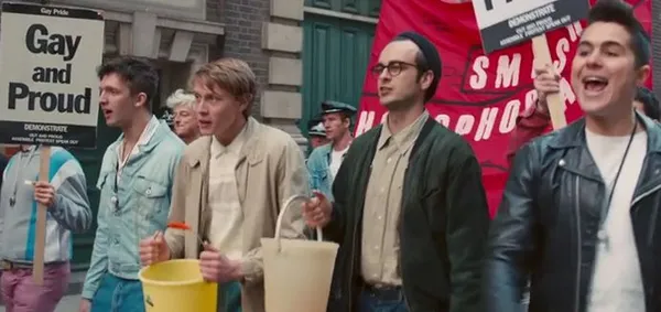 A group of homosexual friends who hang out at an alternative bookshop in London feel an affinity with the striking miners in 1984 and want to do something to help, or rather Mark (Ben Schnetzer), the youngest and most politically active, does and he has the energy as well as the leadership qualities to make things happen.