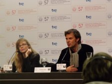 The rain in Spain falls mainly - on this city, at least this week. Tipping it down again this morning. Sploshed my way to the Maria Cristina Hotel - the place to be seen if you're a star in this town - for round table interviews with Atom Egoyan about thriller Chloe.
