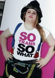 JS: The medium story is, that her story went viral in the fall of 2014. There was an inspiring, empowering photograph of her that went viral. She is in her firefighting helmet with her hands on her hips and a "SO TRANS SO WHAT" shirt. And I saw that image and I was like - because I'm a visual person - I was blown away.