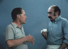 | Eliot Noyes with graphic designer Saul Bass at the Aspen Conference in 1970 Photo: film IDCA 1970; courtesy of Eli Noyes |