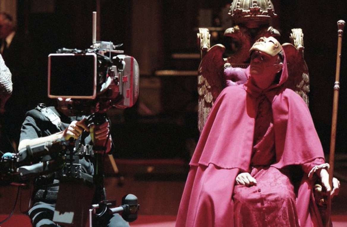 Leon Vitali on the shoes he wore to play the Red Cloak in Eyes Wide Shut: "Much taller [the actor he replaced]! Yeah, yeah, he was! But you see, I lived in the Seventies in London and I had platforms!"