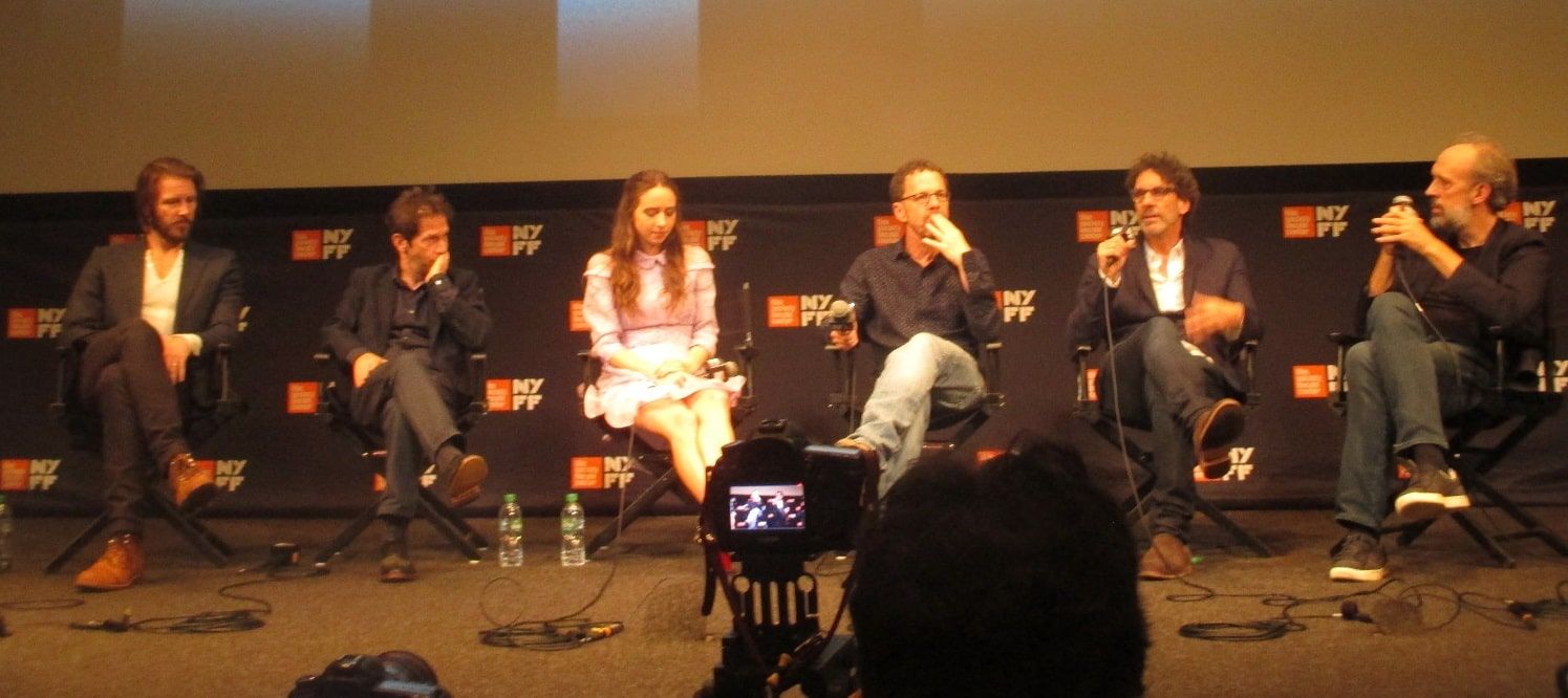 Bill Heck, Tim Blake Nelson, Zoe Kazan, Ethan Coen, and Joel Coen with 56th New York Film Festival Director and Selection Committee Chair Kent Jones