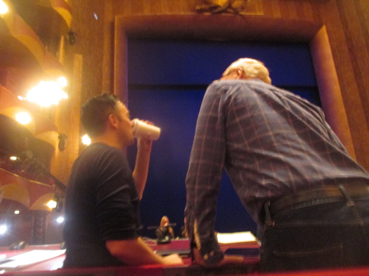 Nico Muhly with librettist Nicholas Wright at the dress rehearsal for Marnie at The Metropolitan Opera - Desirae Brown: "He [Nico] wrote a five piano concerto for us [The 5 Browns] that we premièred with the Chicago Symphony Orchestra."