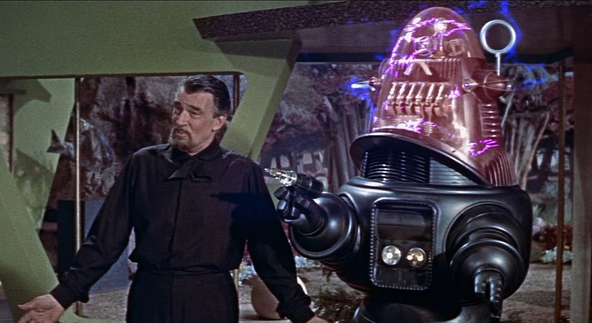 Walter Pidgeon and Robbie the Robot in Forbidden Planet