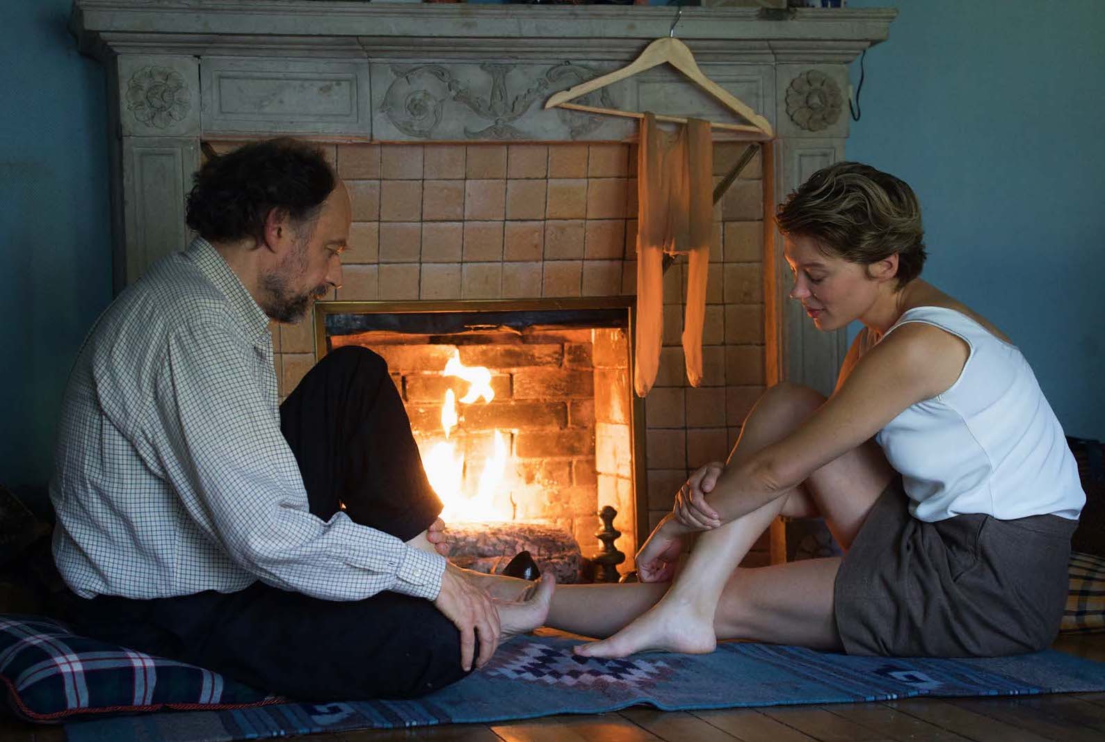 Denis Podalydès as Philip with Léa Seydoux in Arnaud Desplechin’s adaptation with Julie Peyr of Philip Roth’s Deception (Tromperie).