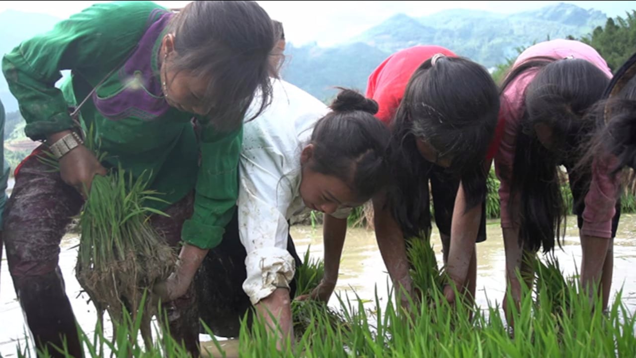 Girls working in the rice paddies