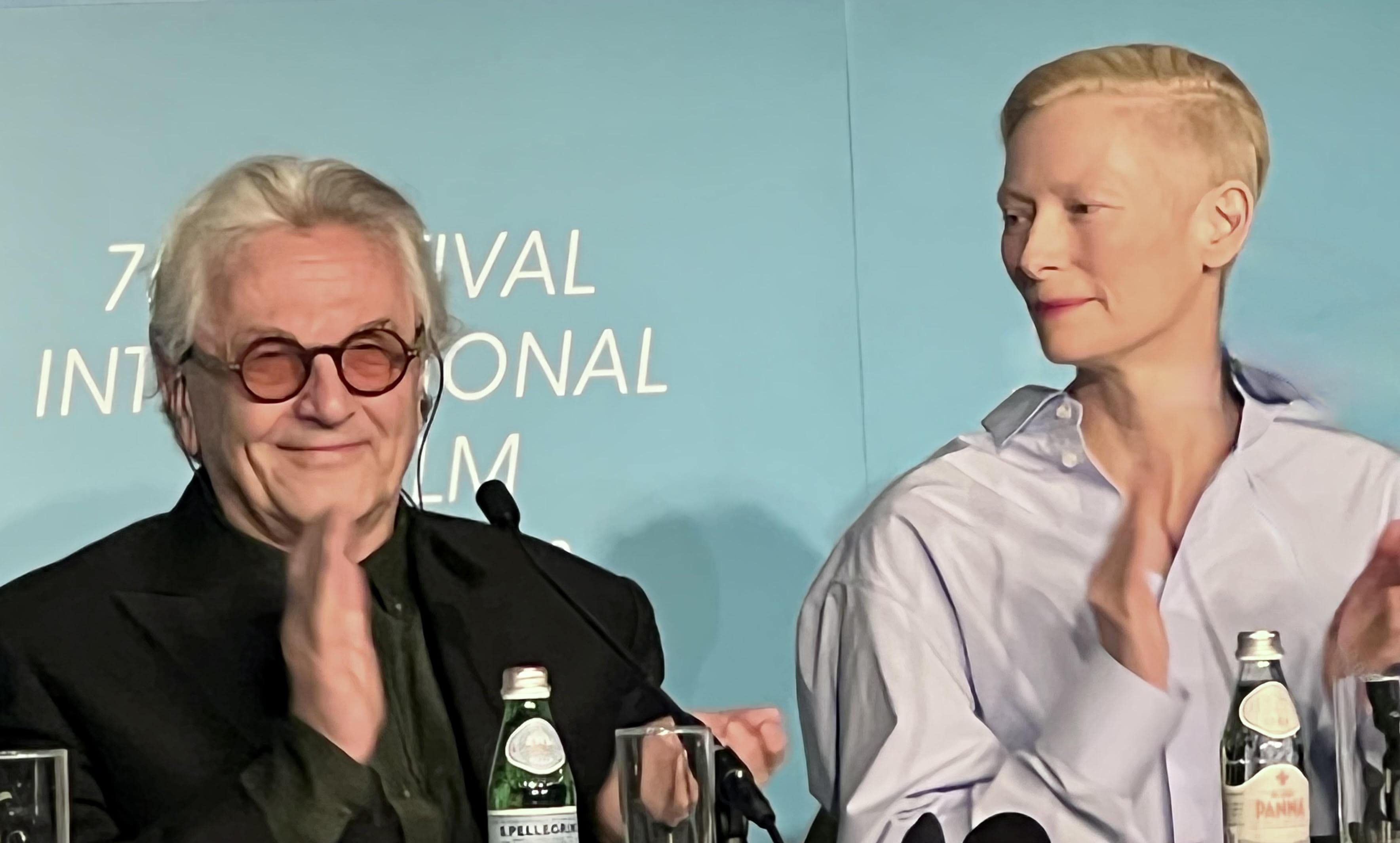 Director George Miller and Tilda Swinton in Cannes. The actress said: 'What I saw last night was overwhelming but he still managed to keep it small and real'