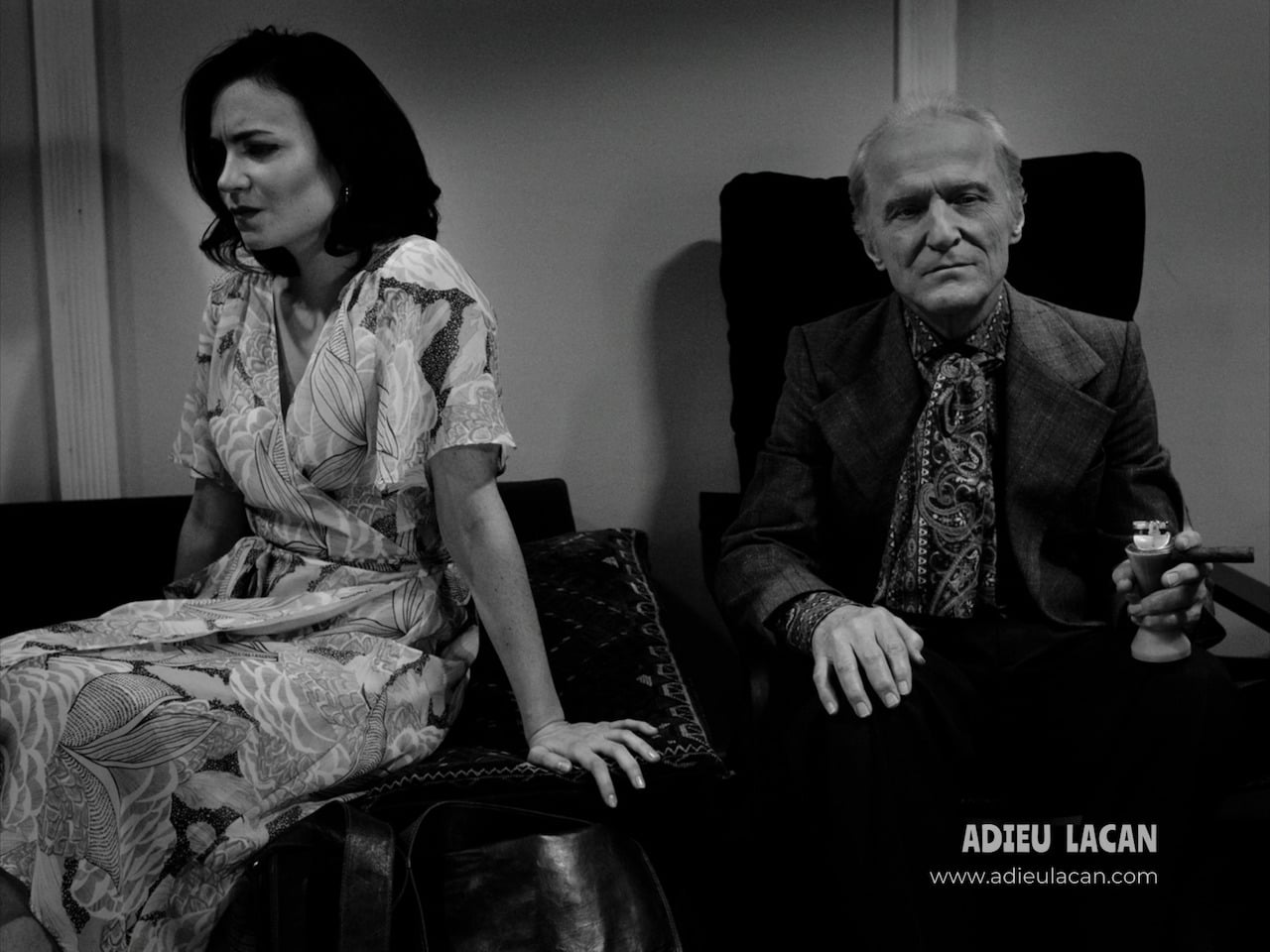 Richard Ledes on Seriema (Ismenia Mendes) with the analyst (David Patrick Kelly) in Adieu Lacan: “The costumes [by Kathryn O'Reardon] were very important.”