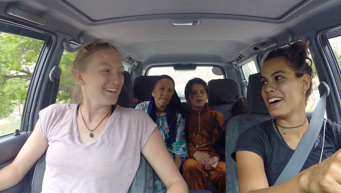 Hannah, Cat and some hitchhikers. Cat Haigh: 'We genuinely did just pick up local hitchhikers, or someone would say, “Oh, you want to come and speak to my mum”, and it just snowballed from that'