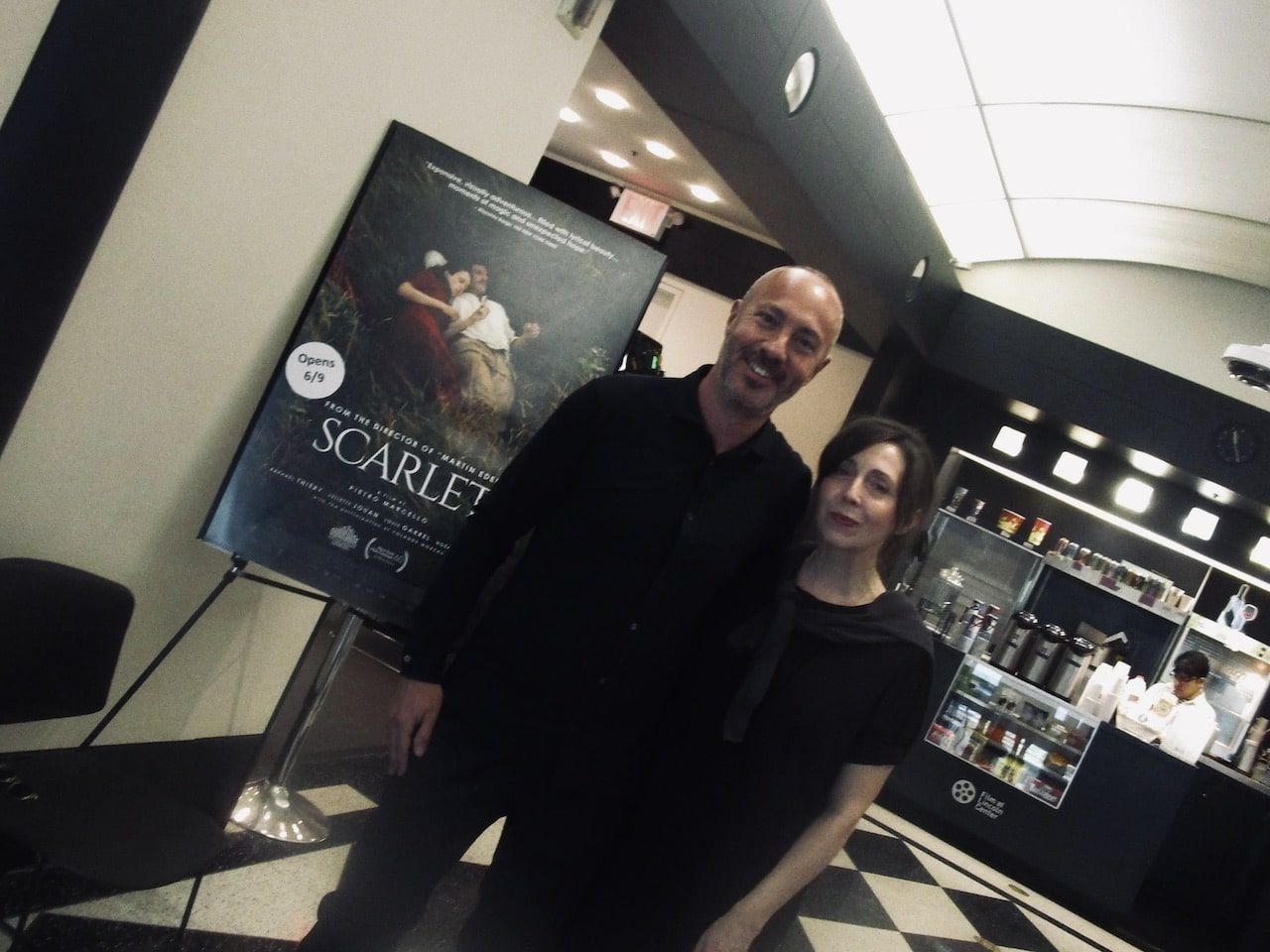 Cinecittà Studios Chief Nicola Maccanico with Anne-Katrin Titze in front of the US Scarlet poster at Open Roads: New Italian Cinema in New York