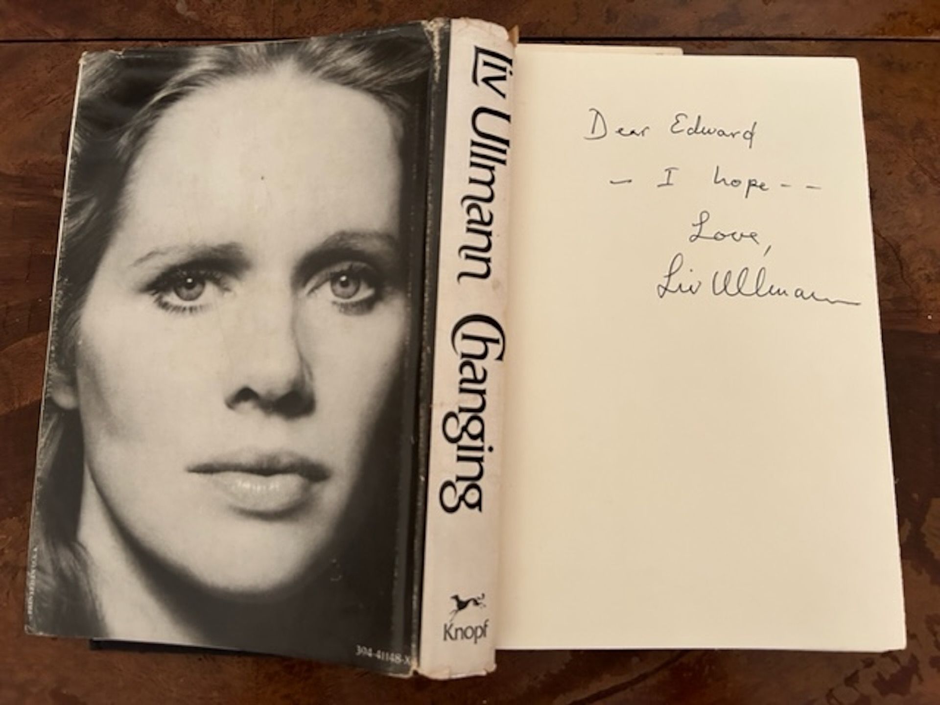 Changing inscribed by Liv Ullmann to Ed Bahlman after their conversation following Faithless at the New York Film Festival in 2000