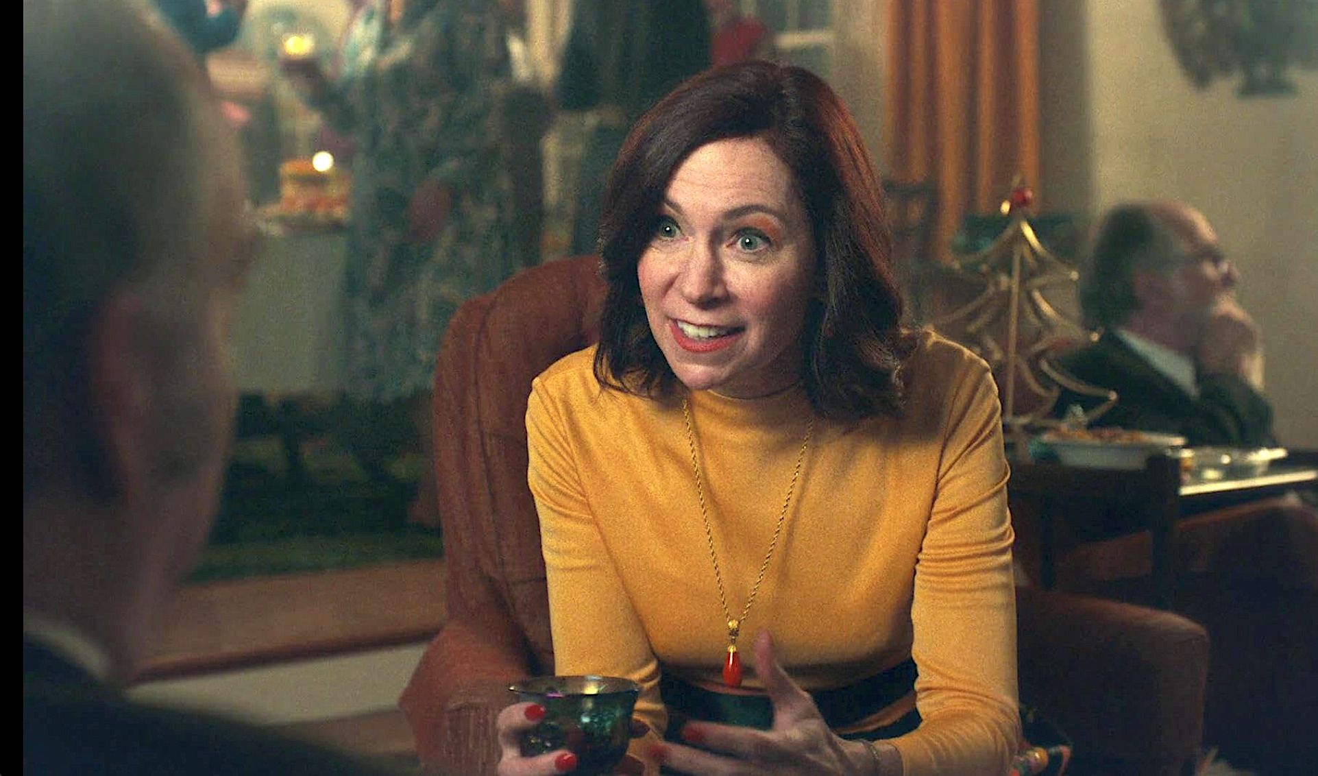 Lydia Crane (Carrie Preston) having a drink with Paul Hunham (Paul Giamatti)) at her Christmas Eve party