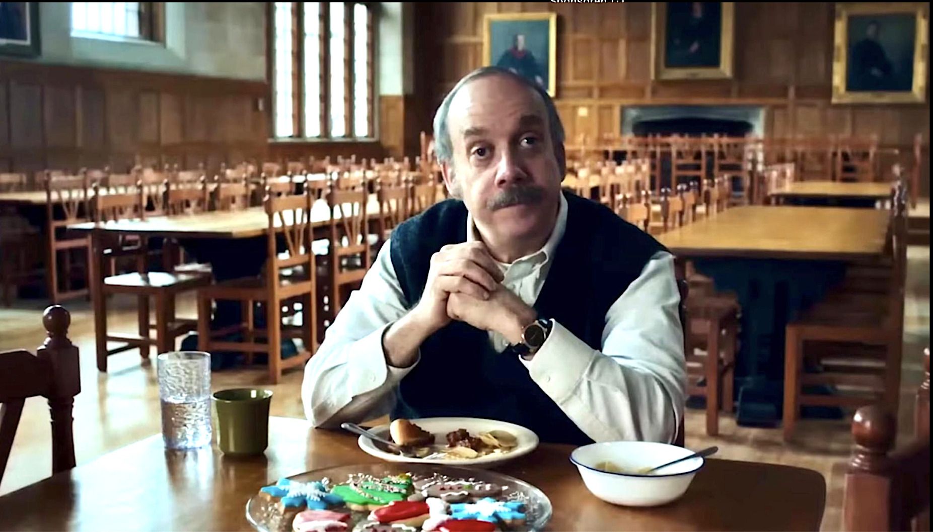Paul Giamatti with Christmas cookies in The Holdovers