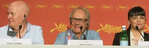 I, Daniel Blake team line-up at the media gathering, from left: Dave Johns, Ken Loach and Hayley Squires