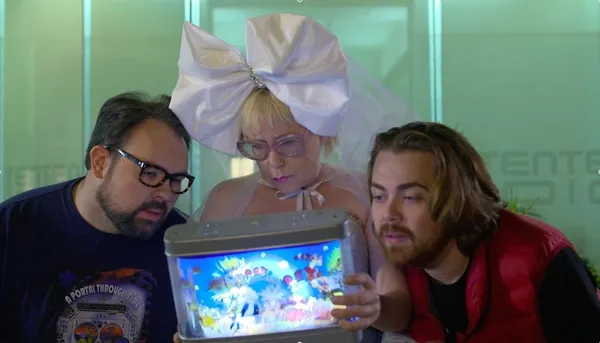 Mysterious as the Bride in Quentin Tarantino's epic Kill Bill, but a lot less glamorous, this tired and confused woman might be invisible to her fellow passengers if it were not for her dress. Everybody wants to know her story but, with the exception of one determined child, nobody wants to ask. Instead they talk around the subject or simply talk about themselves. They talk about their failed relationships, their thwarted ambitions, the mothers who don't understand them and the lizard people sending telepathic messages from the centre of the Earth. Jewish, Chinese, trans and geek stereotypes abound but are acknowledged as such - sometimes, rather glumly, by those who embody them - and there's a sweetness about the rendering of all the characters that goes a long way. The film sends the message that what matters is not whom one jokes about but the nature of the jokes.