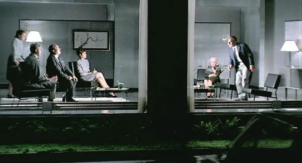 Jacques Tati is an architect. He builds his films and scenes with a structural precision from the foundations up, carefully setting his base in place and then gradually layering on the detail, selecting his colour chart of preference - strongly adhered to, even when the film ultimately ended up in black and white as with Jour De Fete - and finally adding embellishment, often where it is least expected. In the case of Playtime he also literally built a kingdom - the well-documented Tativille, a sprawling set covering more than 15,000 square metres and boasting its own power plant that famously cost a packet. This architectural approach is matched by theme in the film, which uses the sleek glass and clean, if clinical, spaces of the mid-Sixties modern world as an environment in which to explore humanity's place in the city and attitudes to interior/exterior - and more particularly personal/private - space.