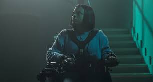 What director José Luis Montesinos has understood well is that essentially, Elena and Athos are in the same position, both trying to navigate a space that has been adapted by not properly designed with their needs in mind, and both experiencing trauma. As Athos struggles to twist an unadorned door handle with his teeth, Elena uses a small grasping stick and the limited movement in her lower right arm to try and perform similar tasks. Speed is of the essence but both have to focus and concentrate in order to achieve their aims. Elena can no longer afford to let her emotions distract her. If she doesn't calm down and use her head - and overcomes lingering fears in the process - she's dead.