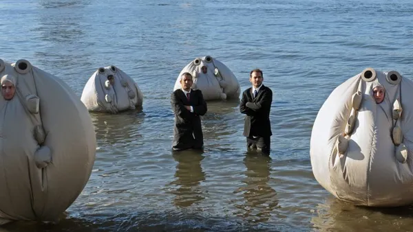 Even if you don’t know them by name, you’ve probably seen The Yes Men in action. They are the culture-jamming duo of Andy Bichlbaum and Mike Bonanno, who operate as a social justice-focused prankster comedy activist act designed to highlight injustice around the world. They lie their way into corporate events and arrange bogus press conferences, feeding false stories to a lazy media. They are the guys who dressed up a bunch of fellow campaigners in giant inflatable climate change protection suits called “Survivaballs” and had them wade out into New York’s Hudson River, and who once laid on a fake-yet-convincing UN Climate Change press conference where they staged a Canadian Government announcement that Nigeria would be soon in receipt of $13 billion of climate debt payment. They've been doing this for decades, and their antics have featured in two films before (The Yes Men and The Yes Men Fix The World), but director Laura Nix is more interested in the personal side of things this time around.